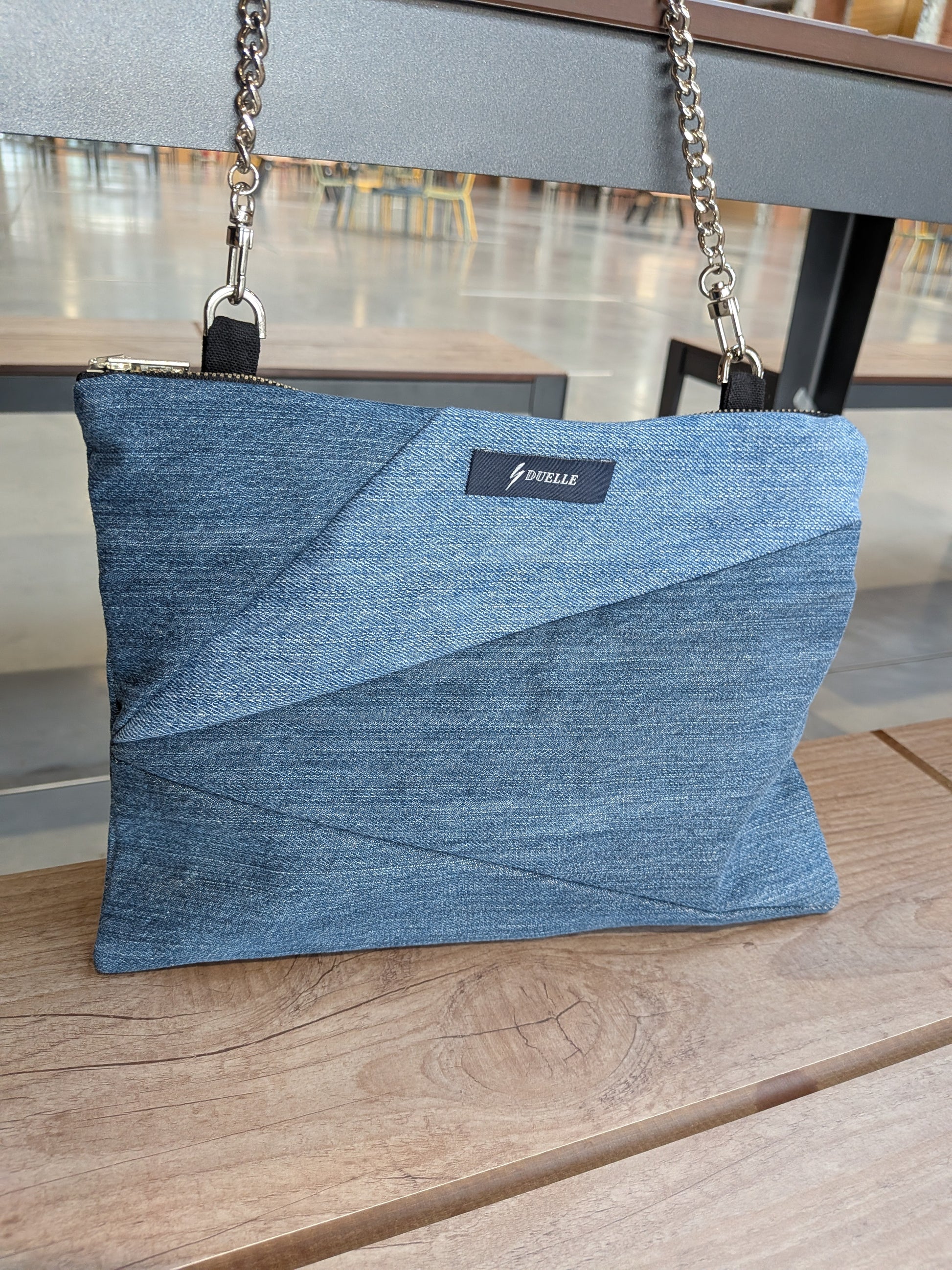 Matière principale : denim provenant de jeans upcyclés.